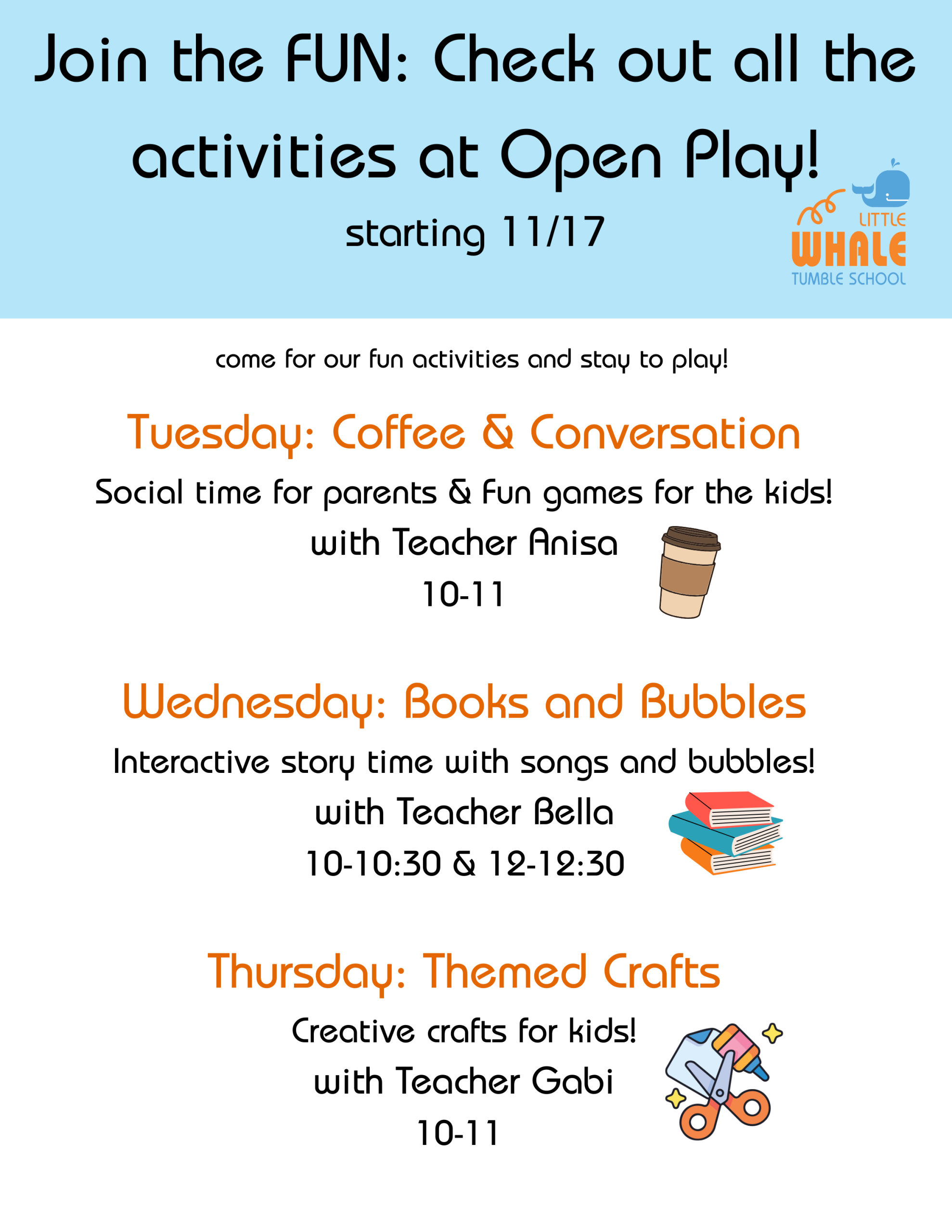 All enrolled students are “whalecome” to participate in our weekly Open Play times for extra skills practice and play. Open Play is included in your membership and is offered to every enrolled student.